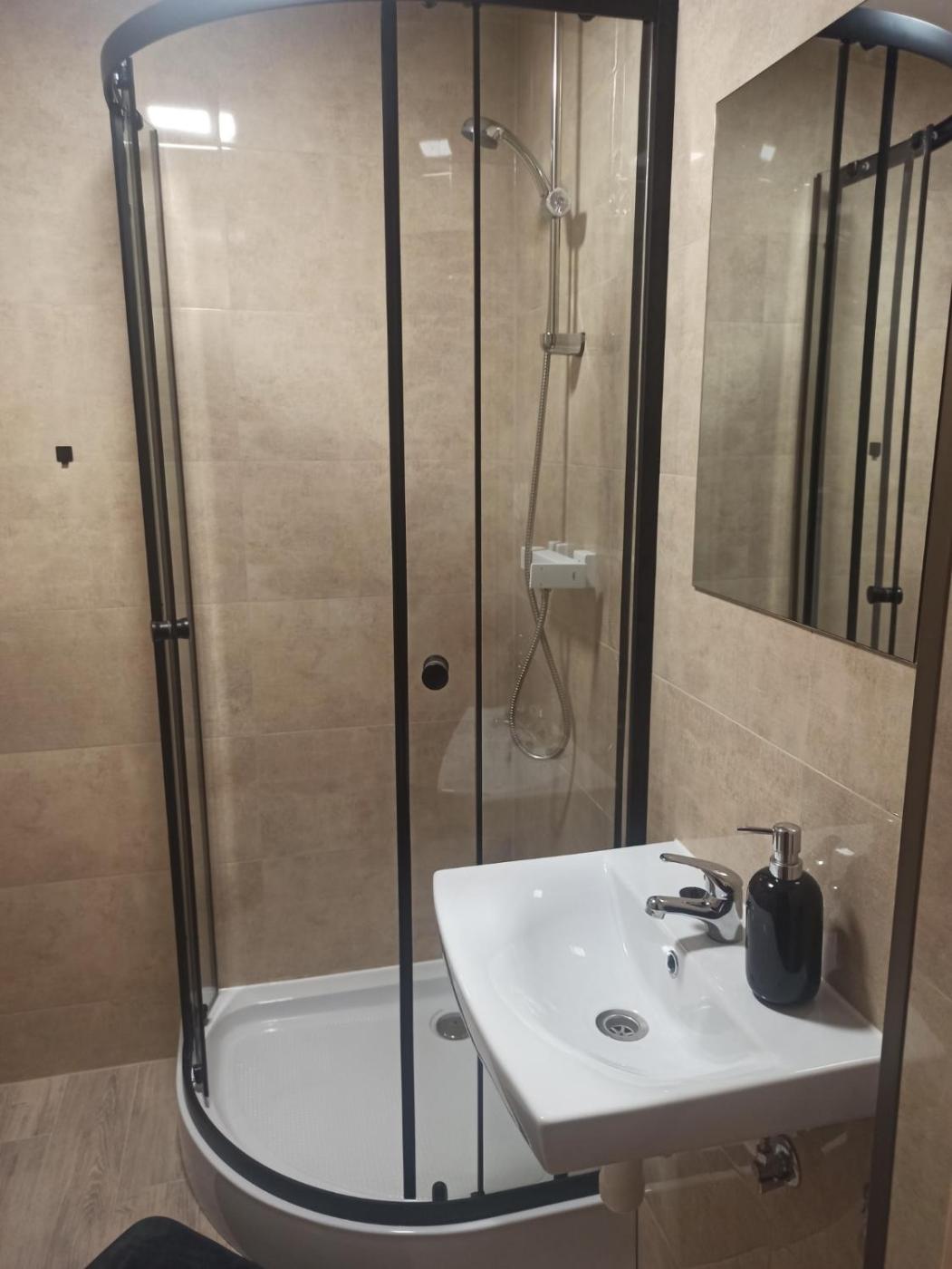 Pokój trzyosobowy. The triple room provides a wardrobe, heating, as well as a private bathroom featuring a shower. The unit offers 2 beds. Pokój Trzyosobowy - 3 osobowy. Powierzchnia pokoju ok.: 14 mkw.