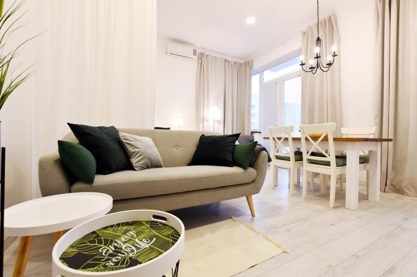 Apartament z 1 sypialnią. In the well-fitted kitchen, guests will find a stovetop, a refrigerator, a dishwasher and kitchenware. The air-conditioned apartment offers a flat-screen TV with cable channels, a washing machine, a private entrance, a tea and coffee maker as well as city views. The unit has 1 bed. Apartament - 3 osobowy. Powierzchnia pokoju ok.: 55 mkw.